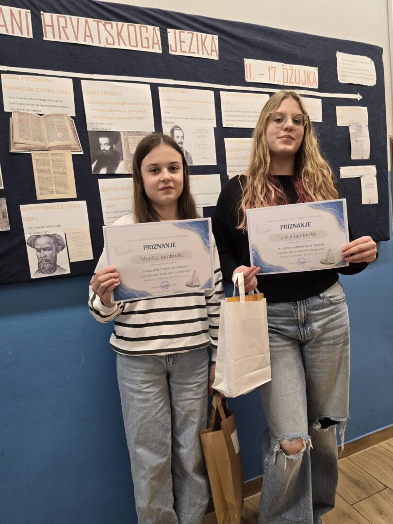 Monika Jambrošić (5.b)  osvojila je drugu nagradu za kratki prozni tekst „Što je to mašta“ uz mentorstvo učiteljice Petre Bedić. Njezin rad posebno je zapažen zbog izražene kreativnosti i jasnoće poruke.