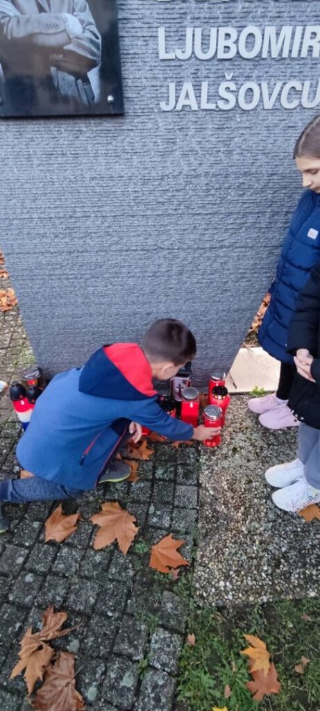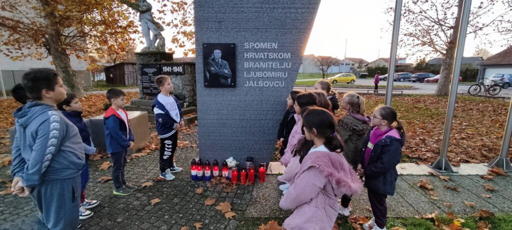 U sklopu obilježavanja, učenici su sa svojim razrednicima posjetili i spomenik palom branitelju Ljubomiru Jalšovcu u Domašincu. Učenici 2.a razreda su uz paljenje lampiona izradili i prekrasan plakat s vodotornjem i golubicom mira. Paljenjem lampiona i kratkim činom prisjećanja učenici su odali počast svom sumještaninu, jednom od onih koji su svoj život položili za slobodu domovine. Posjet spomeniku bio je važan trenutak u kojem su učenici osvijestili kako se povijest Domovinskog rata ne nalazi samo u knjigama, nego i u njihovoj neposrednoj zajednici.