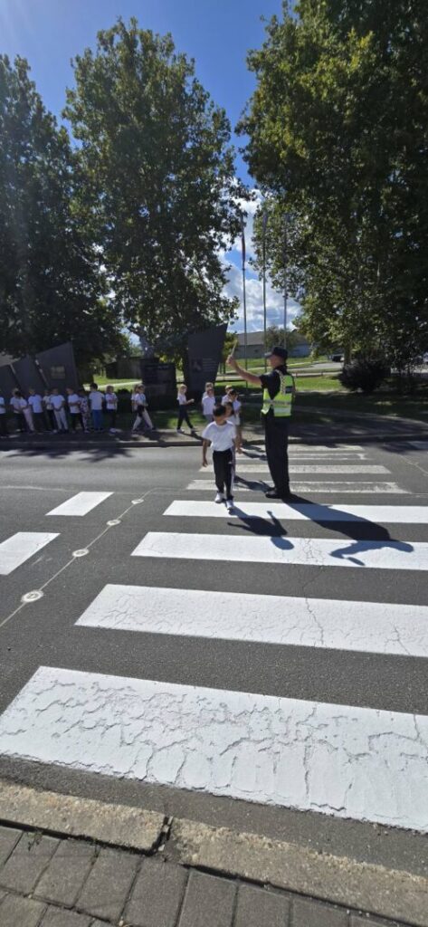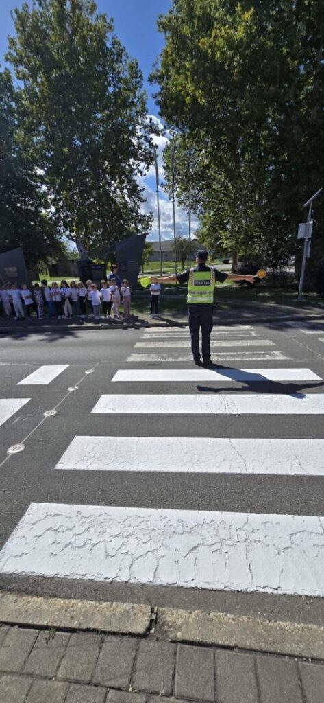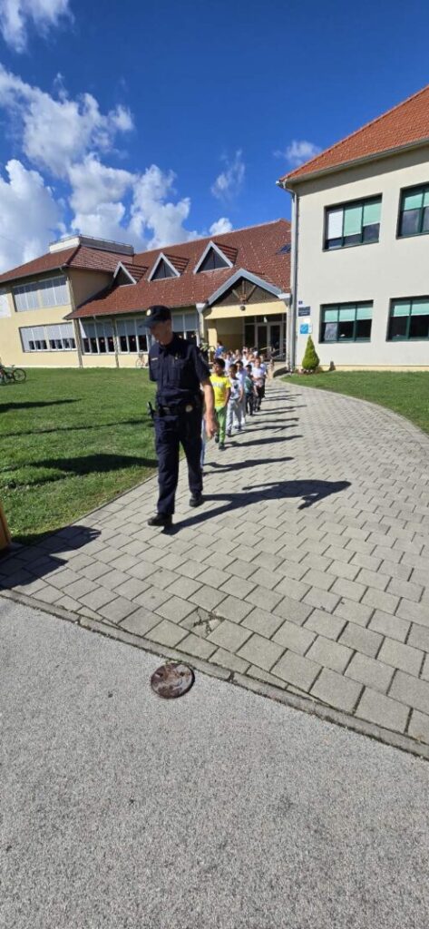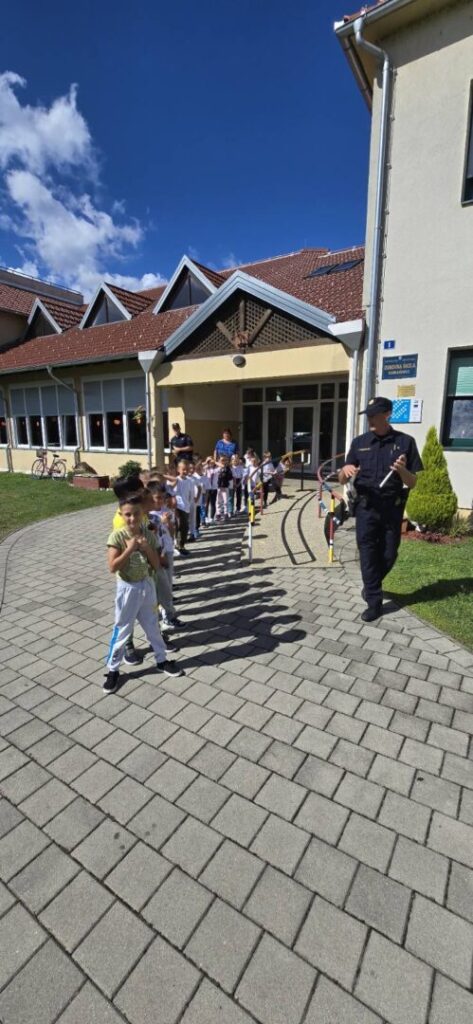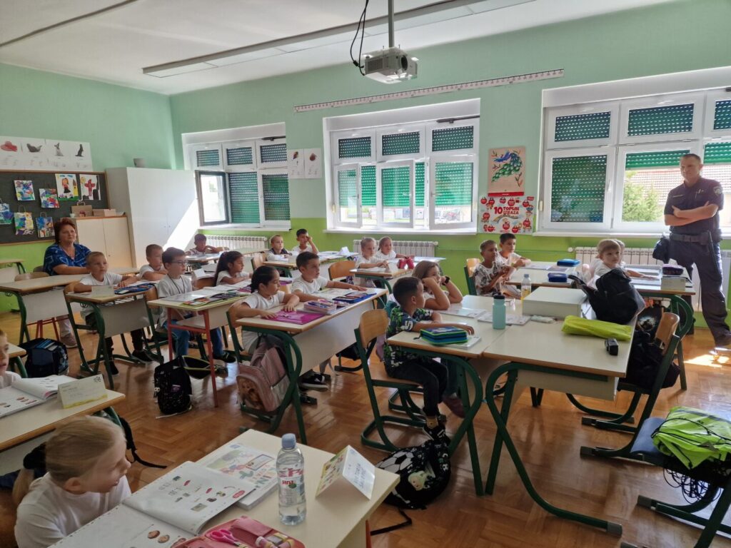 U učionici su policijski službenici prvašiće upoznali s prometnim pravilima, znakovima i sigurnom ponašanju na cesti. Nakon toga zajedno su izašli van i naučili kako pravilno prelaziti preko zebre, gledati lijevo-desno, te kako se sigurno kretati uz cestu.