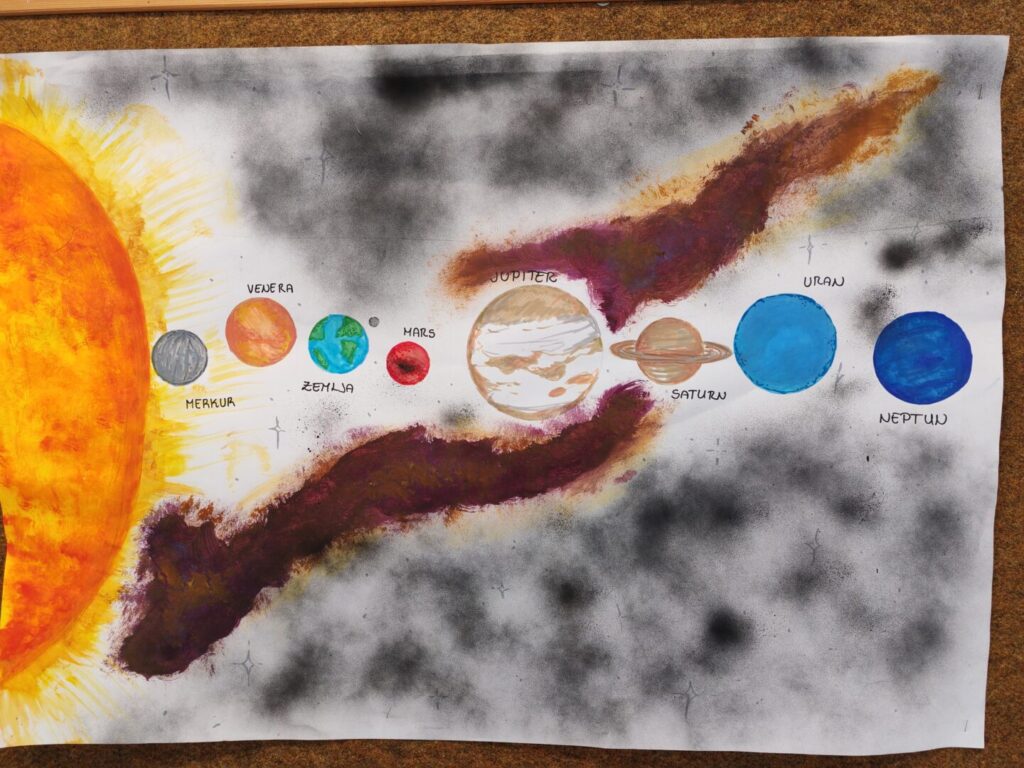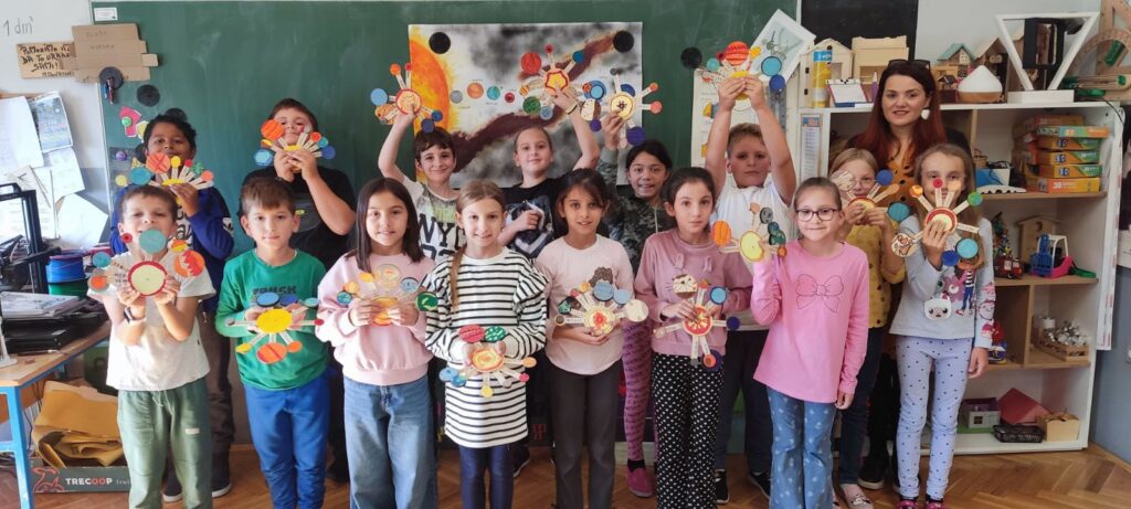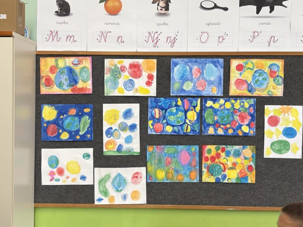 U četvrtak su naši prvašići sa svojom učiteljicom Šteficom Marodi Hatlak oslikavali svoje male planetarije, stvarajući prava umjetnička remek-djela koja sada krase njihovu učionicu.
